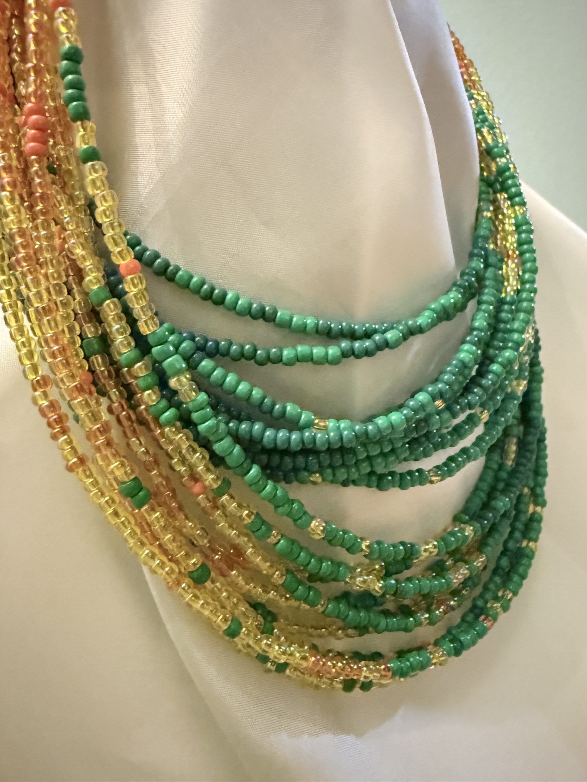 Cool. The light olive/sage green bead represents cooler temperatures—you may need a jacket while some people may still be wearing shorts.